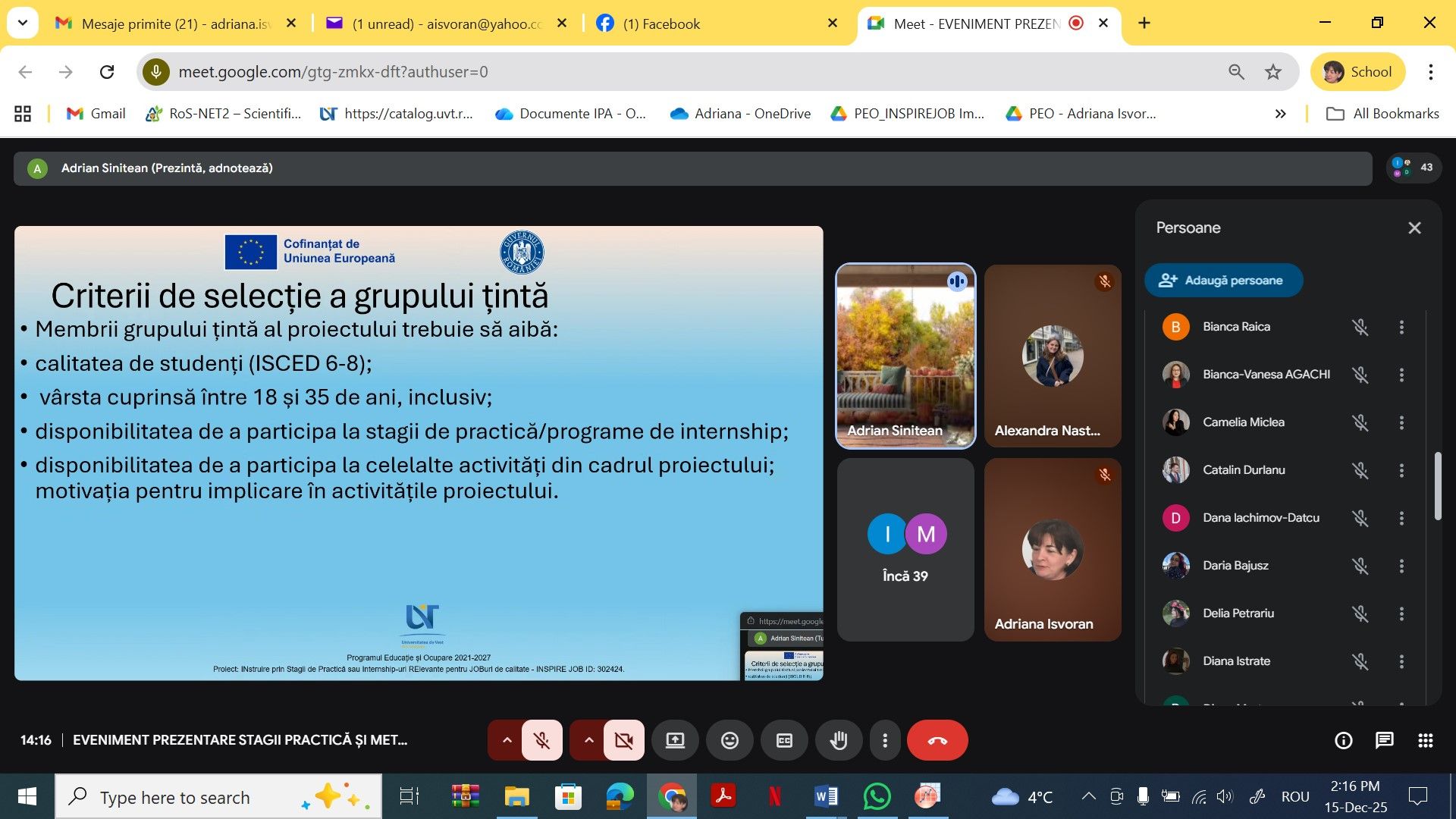 Evenimente de informare asupra proiectului pentru studenti – 18 decembrie 2024
